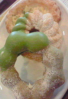 真ん中のは抹茶葛あずきということで、フレンチドーナツの間に透明なゼリーっぽい…これが葛なの?というものと餡子が挟まっておりました。